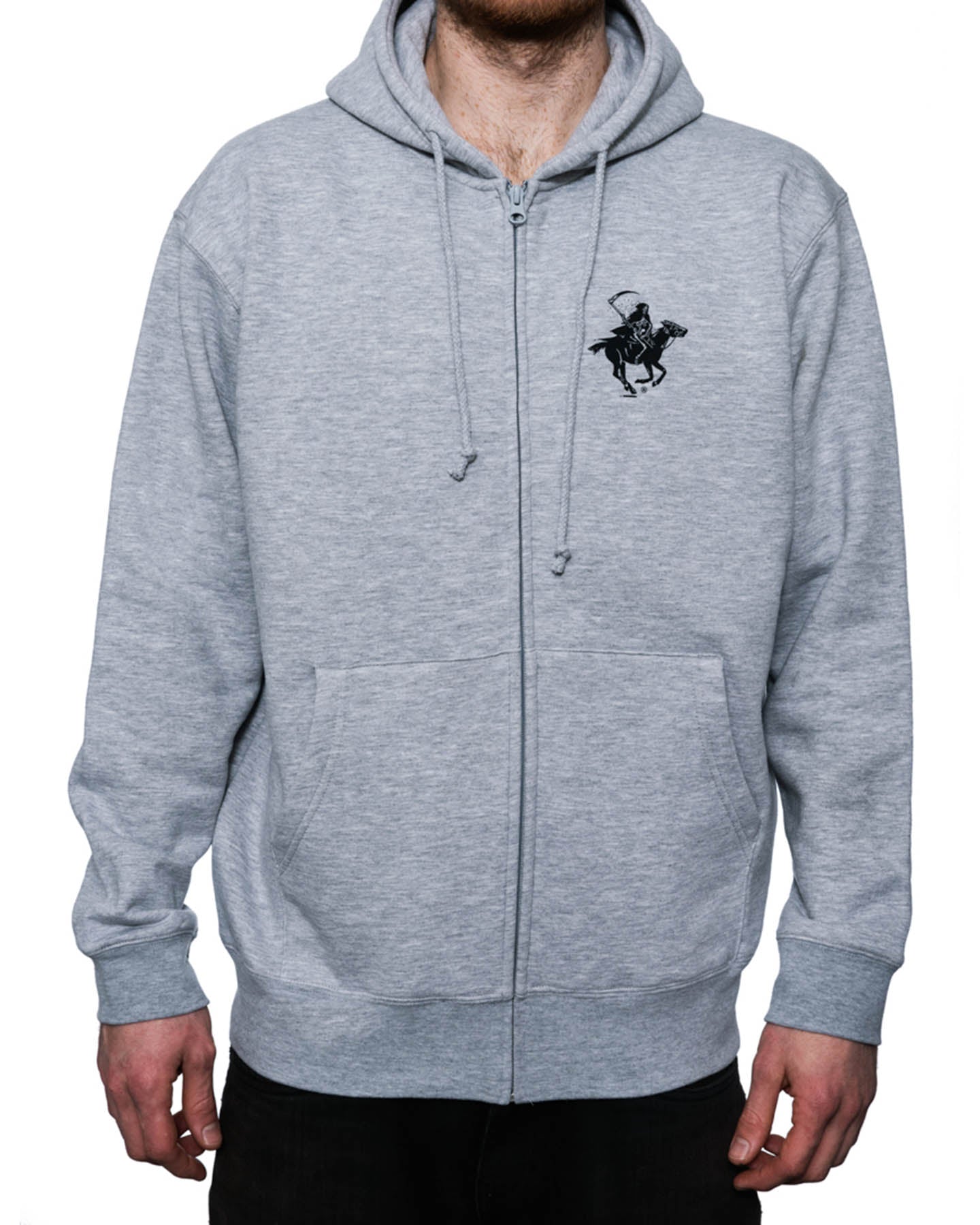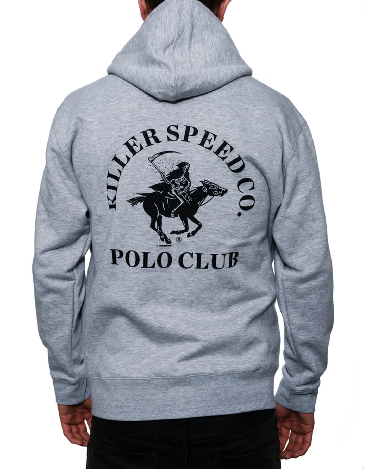 Killer Speed Co. 'Polo Reaper' zip-up hoodie in heather grey.