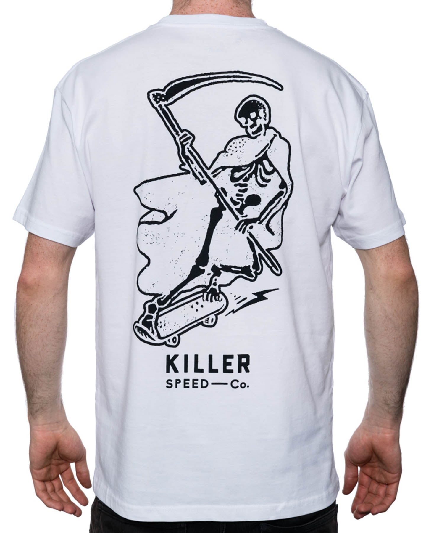 - Silkscreened Killer Speed Co. Logo on front left & Skate Reaper graphic on the back