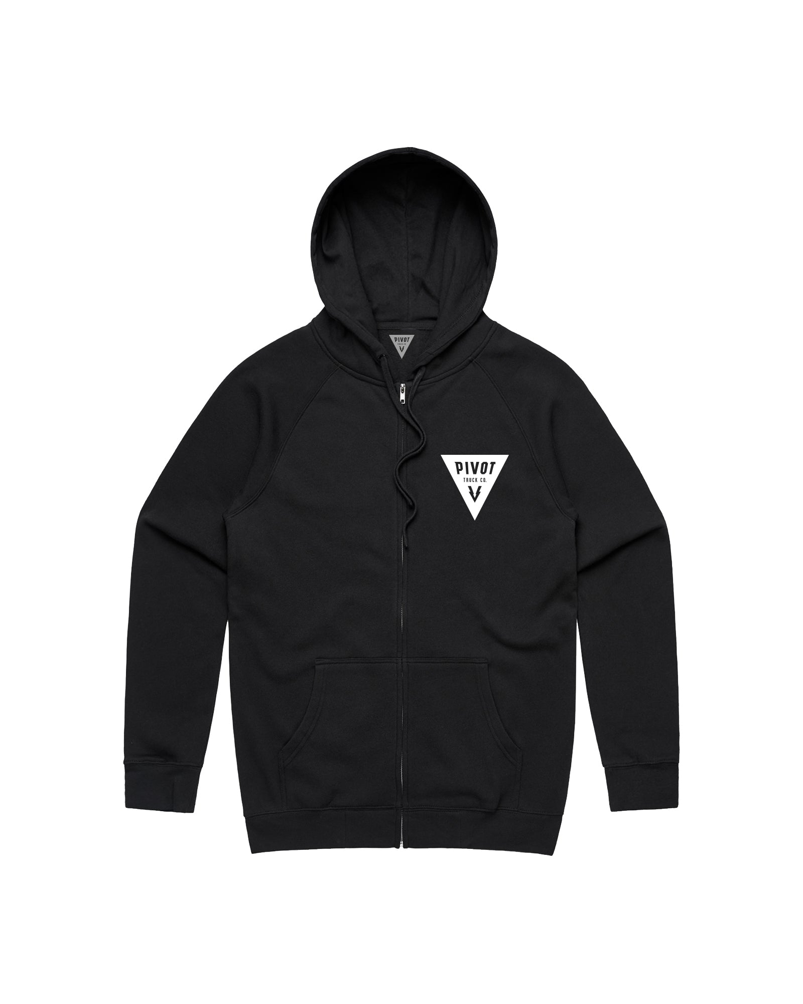 PIVOT Truck Co. Pocket Print Zip Hoodie in Black.