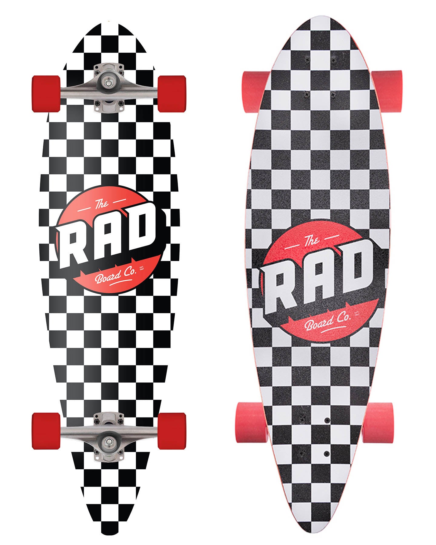 RAD COMPLETE PINTAIL MINI LONGBOARD - CHECKERS BLACK/WHITE 9