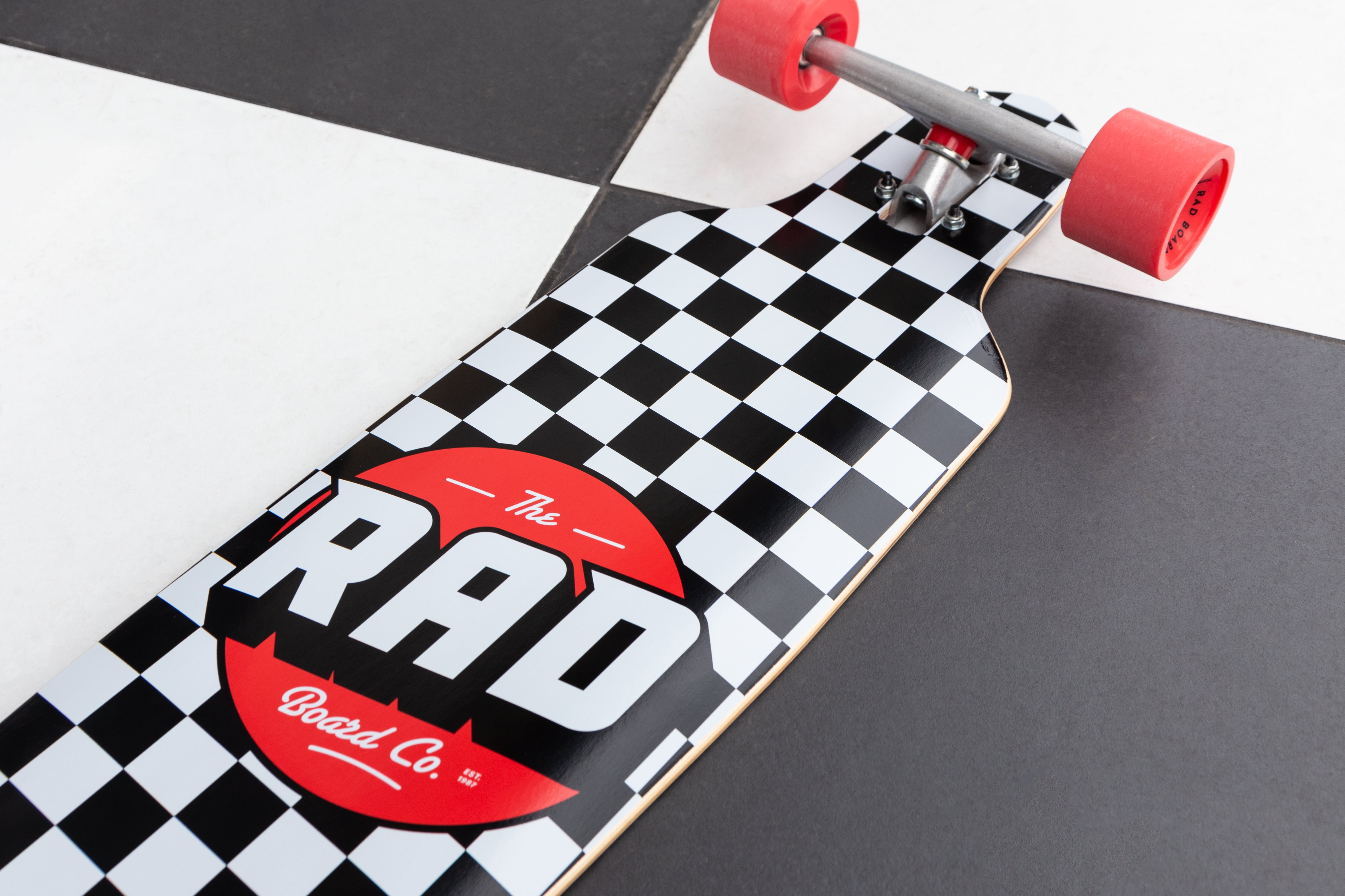 RAD COMPLETE DROP THROUGH LONGBOARD - CHECKERS BLACK/WHITE 9
